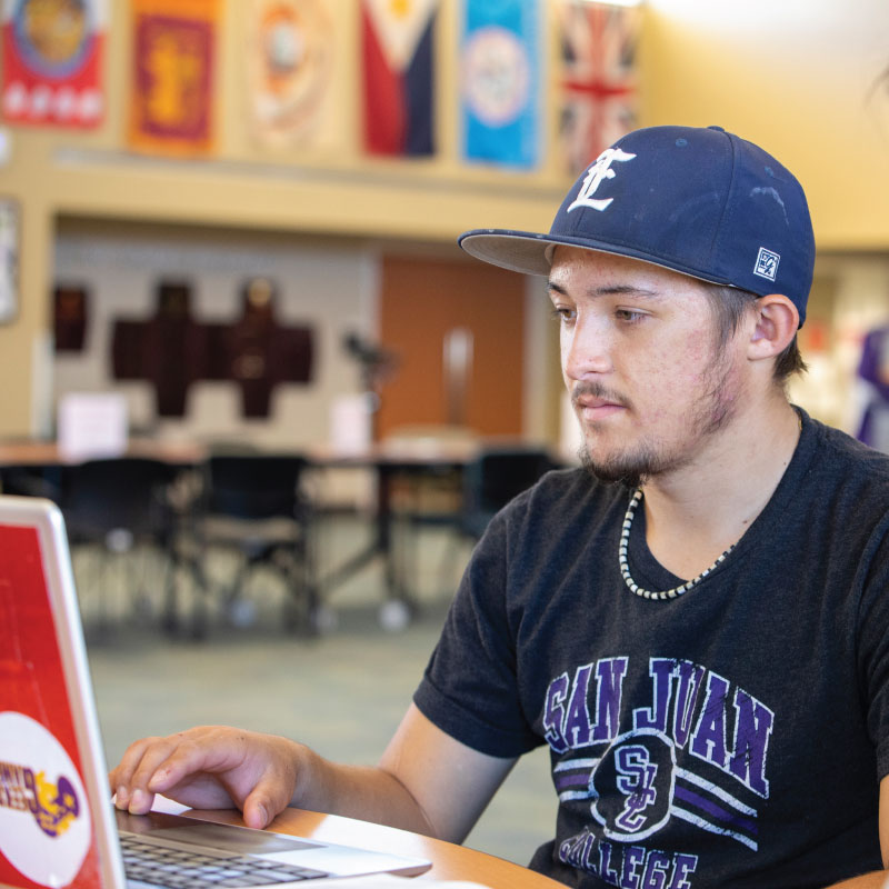 San Juan College Student working on laptop