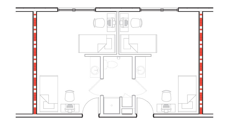 Double Occupant, same gender room with a private sink and a shared bathroom