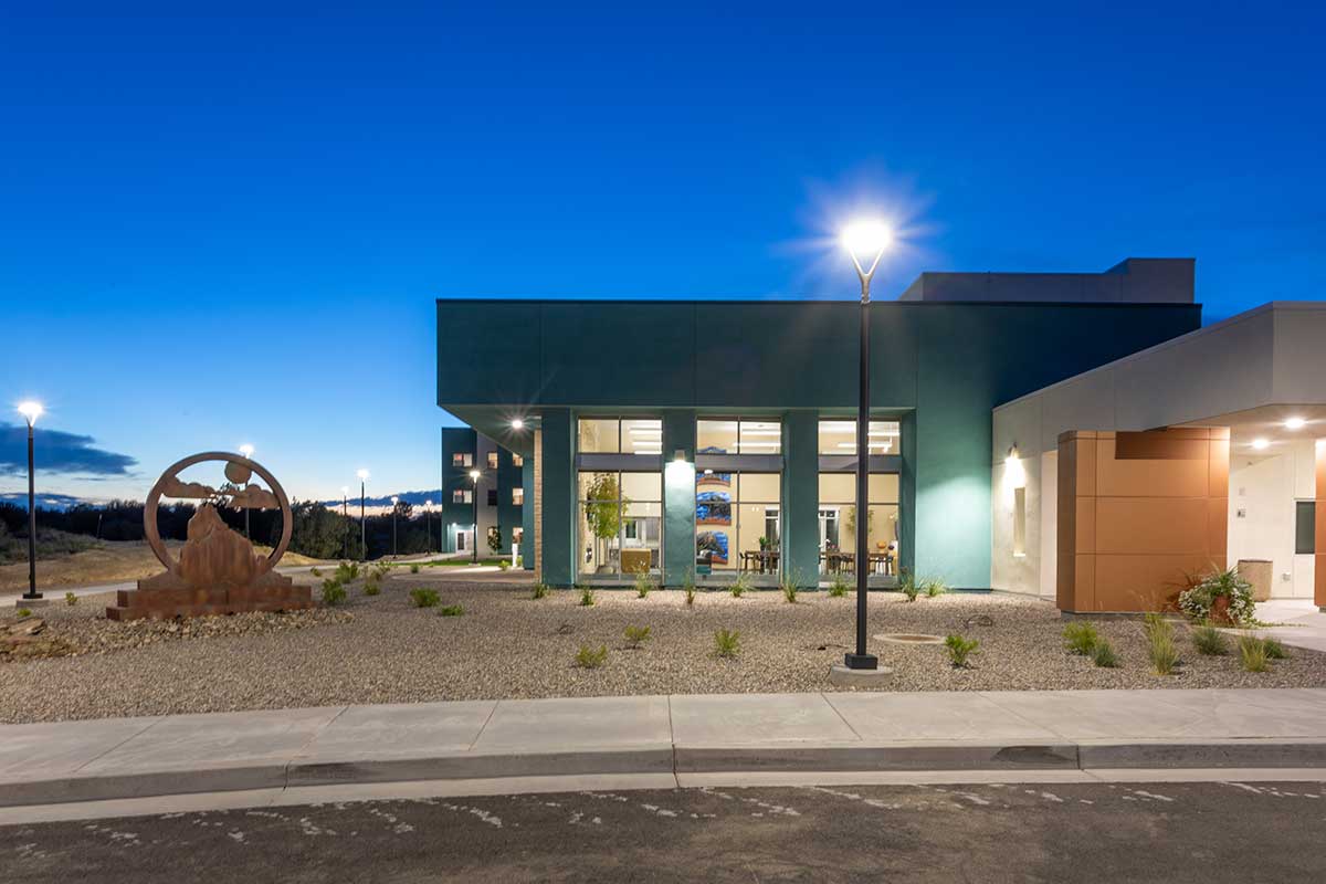 Nizhóní Sunrise Suites, our three-story residence hall, can house up to 150 students. You will live in single or double-occupancy rooms. Nizhóní Sunrise Suites offers plenty of amenities for residents like free on-site laundry, fast WiFi, and free parking.